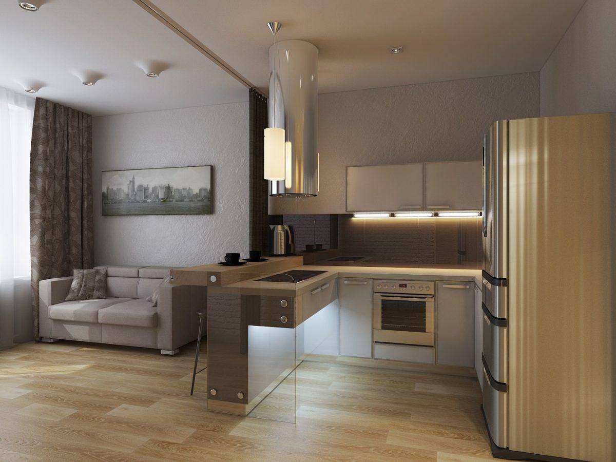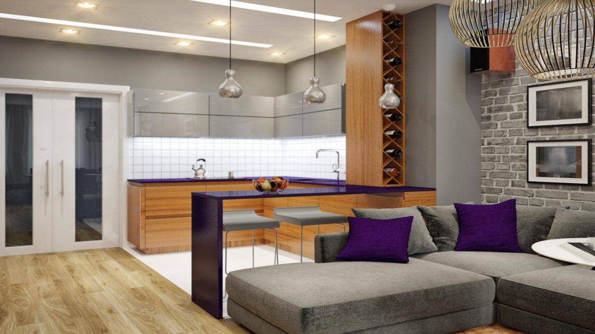 - Присутствие в квартире совмещённой кухни-гостиной либо студии.