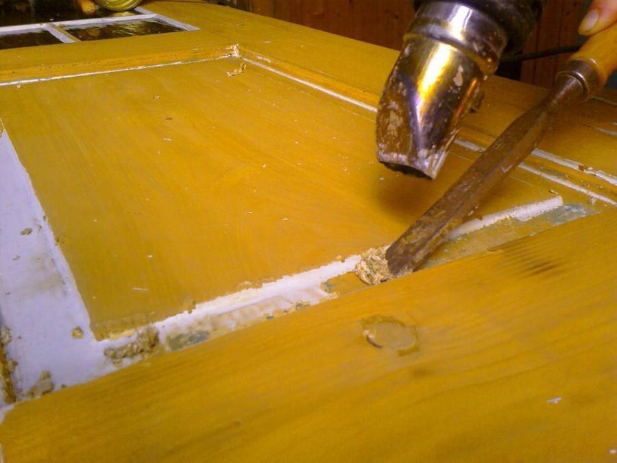 6.Если у вас такого фена нет, и вы не планируете его приобретать, в качестве альтернативы можно применить паяльную лампу или обычный утюг для глажки белья. Лучше, если утюг будет советского производства, он поувесистей и эффект будет больше. Под утюг можно подложить фольгу, которую плотно прижимают подошвой утюга, и краска быстро размягчается и легко поддается ножу или шпателю. С утюгом и паяльной лампой нужно быть предельно осторожными, чтобы избежать возгорания. Да и долго держать на одном месте не целесообразно, так как, если передержать утюг, сначала краска вроде легко поддается, а потом снова становиться менее податливой, в этом деле нужно поймать золотую середину.