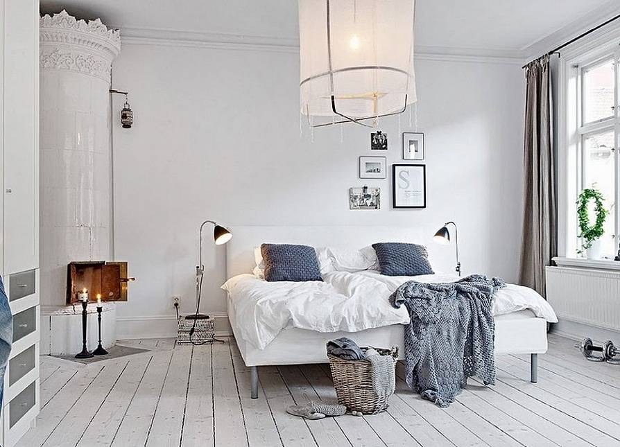 Отдельно хочется сказать о спальне в норвежском стиле. Поскольку, светлые тона визуально увеличивают небольшое помещение, то для такой комнаты как спальня норвежский стиль подходит идеально.