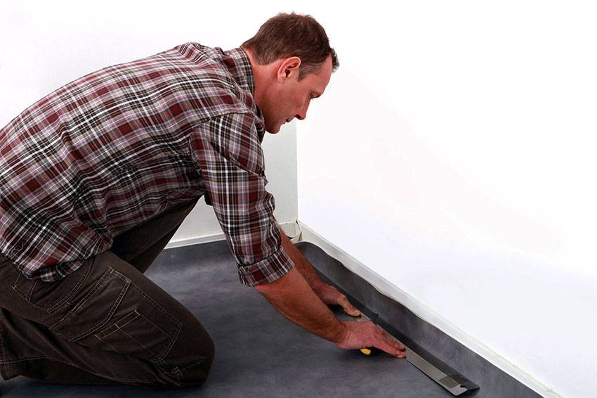 Новый линолеум необходимо укладывать в комнате таким образом, чтобы одна сторона полностью прилегала к стене