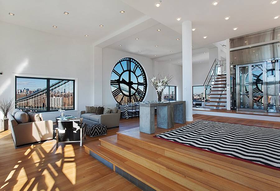 Полюбить этот пентхаус в Бруклине можно хотя бы за выразительность интерьера и потрясающий вид из окон! Вид на Бруклинский мост и сверкающий Нью-Йорк из гостиной очарует каждого, и пентхаус-триплекс в башне с часами может это предложить. Тиканье гигантских часов создаёт удивительный эмоциональный фон гостиной. Эргономичная современная кухня, обеденный уголок, роскошные спальни и спа-ванная станут доступны за 18 млн $.