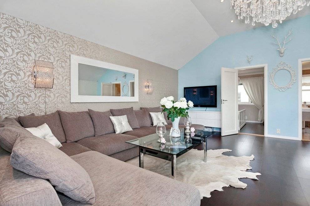 Оцените габариты комнаты, стилистическое направление и количество предметов мебели в ней. Так, просторное светлое помещение в современном минималистском стиле станет интереснее, благодаря использованию акцентной стены с декоративным дамаском насыщенного цвета.