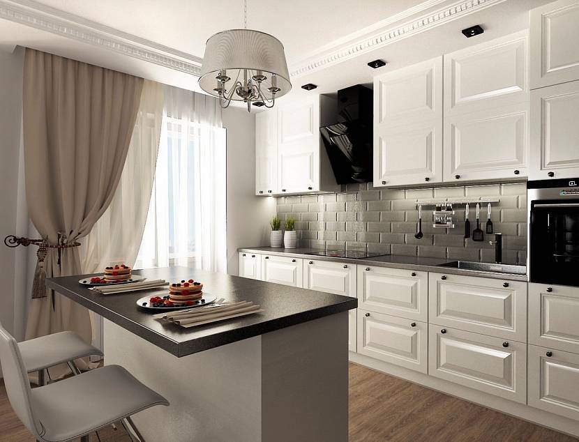 Пример классической кухни в черно-белом варианте.