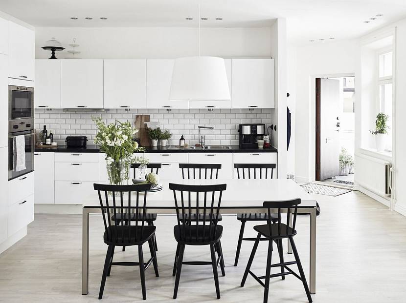 Черный стол и белая кухня