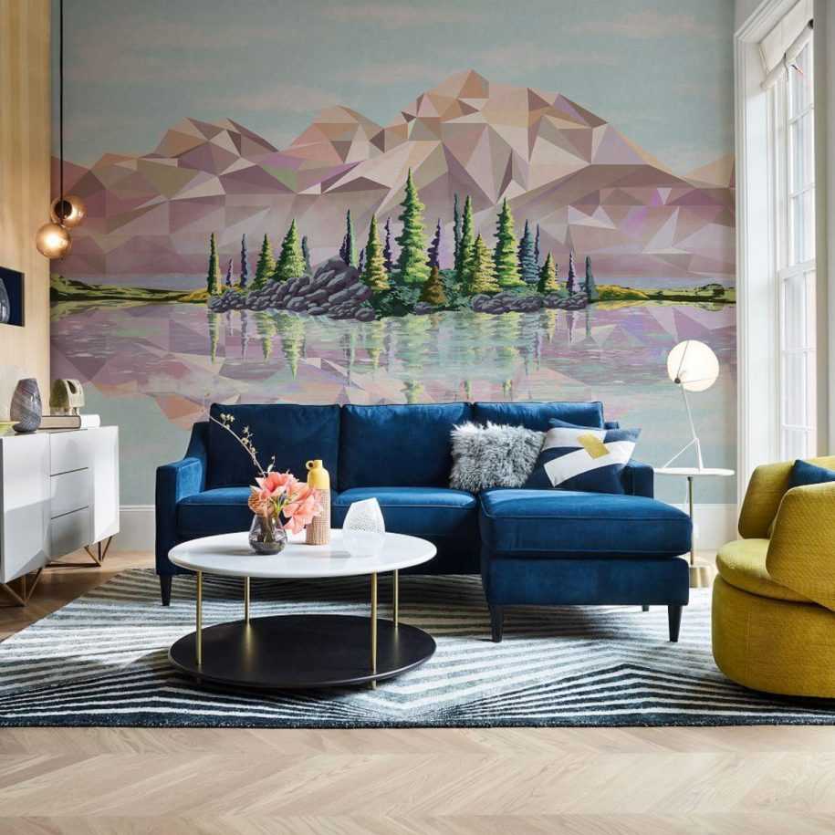 Яркие флизелиновые обои в пляжном интерьере гостиной