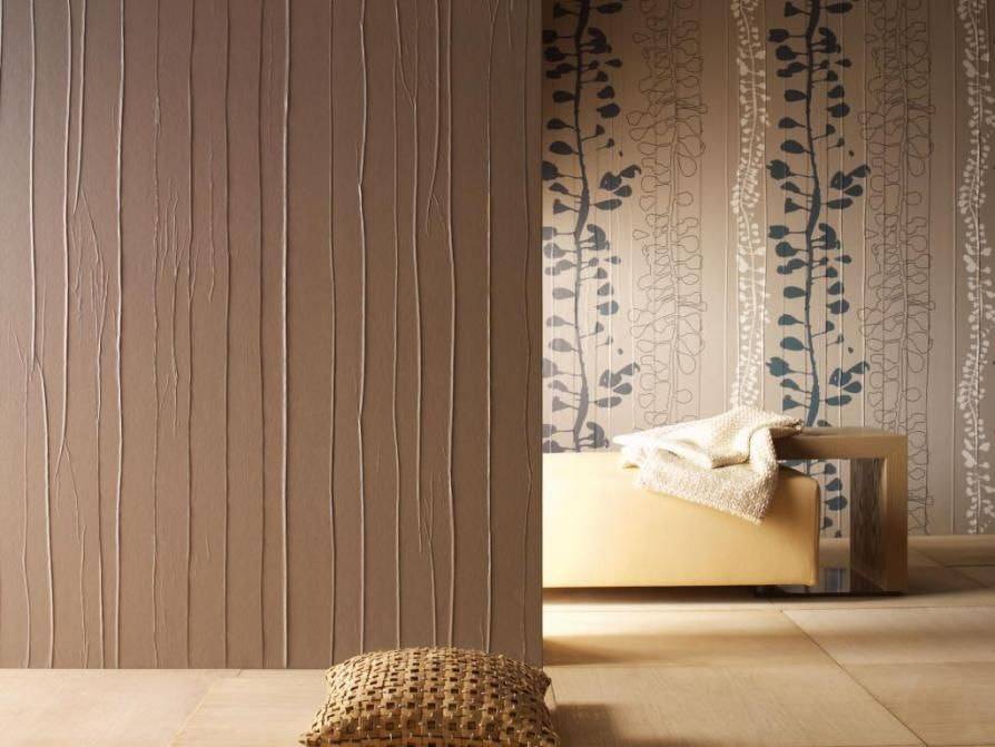 Рисунок 4. Для зонирования пространства, сочетайте однотонные и фактурные обои.