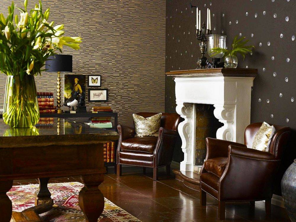 - Всегда будет удачным отделение зоны приема гостей со столиком от зоны тихого отдыха, где предполагается просто чтение книги под абажуром. При этом зона для приема гостей оклеивается более яркими фактурными обоями (рис. 4), а спокойная зона декорируется в сдержанных тонах.