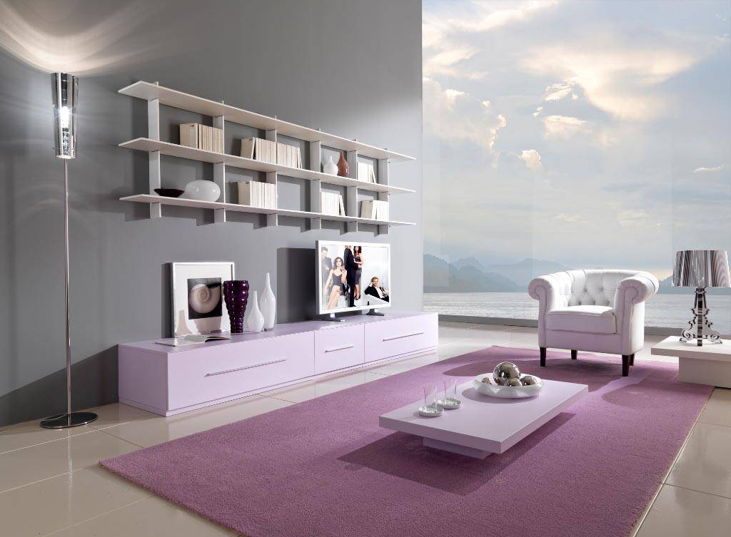 Элегантная серо-фиолетовая гостиная – не редкость в современном дизайне, особенно в стилях хай-тек, лофт и контемпорари.