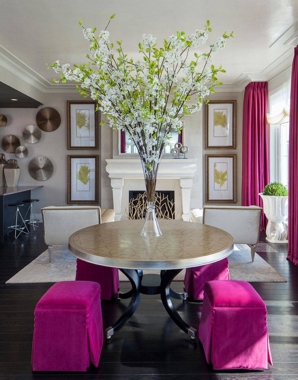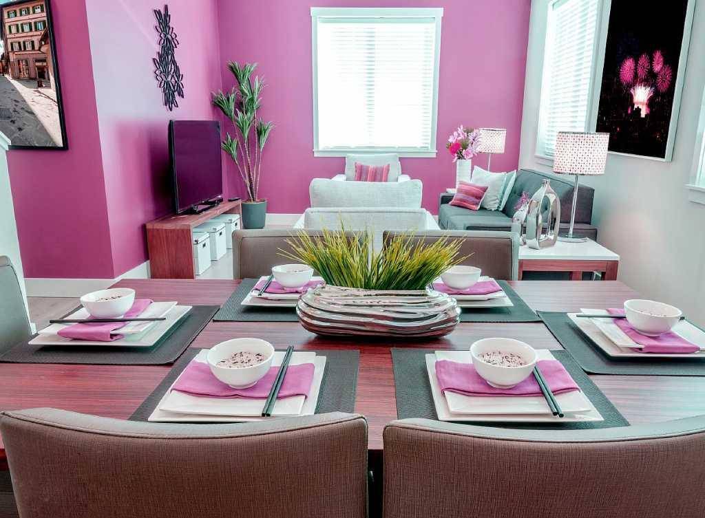 Полотна нежных, светлых оттенков при более ярких акцентах помогут визуально расширить помещение, а яркие, граничащие с малиновым – идеальны для зонирования пространства. Но в любом случае оформление помещения в розовых тонах требует креативного подхода.