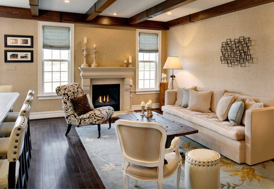 Обои могут считаться наиболее подходящими лишь при условии, что они подбираются с учетом стиля гостиной. Помня об этом, можно предложить следующие варианты: