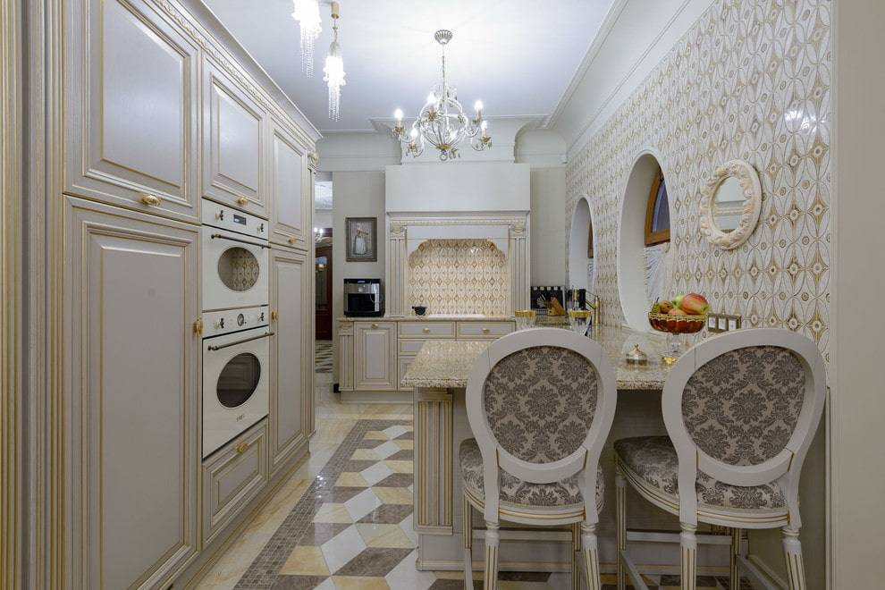 Недостаток только один — в зоне кухни белизна быстро потеряет свежесть, поэтому будьте готовы к регулярной уборке.