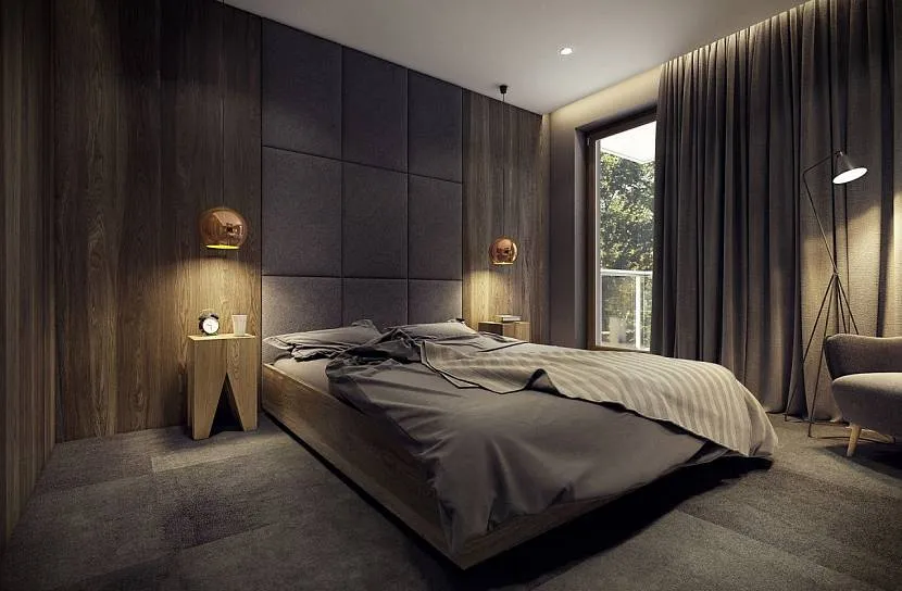 Кстати, лучше всего оформлять спальню в темных тонах на солнечной стороне. В этом случае свет, проникающий сквозь полотна штор, поможет избежать мрачности помещения.