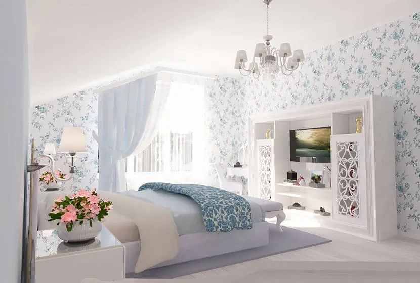 Выбирая цвет обоев в стиле прованс для спальни, стоит учитывать размер помещения и его конструкционные особенности