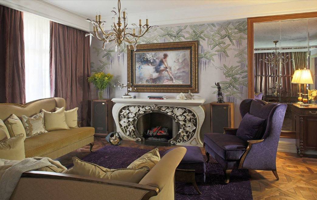 Оформление интерьера гостиной обоями барокко, фото
