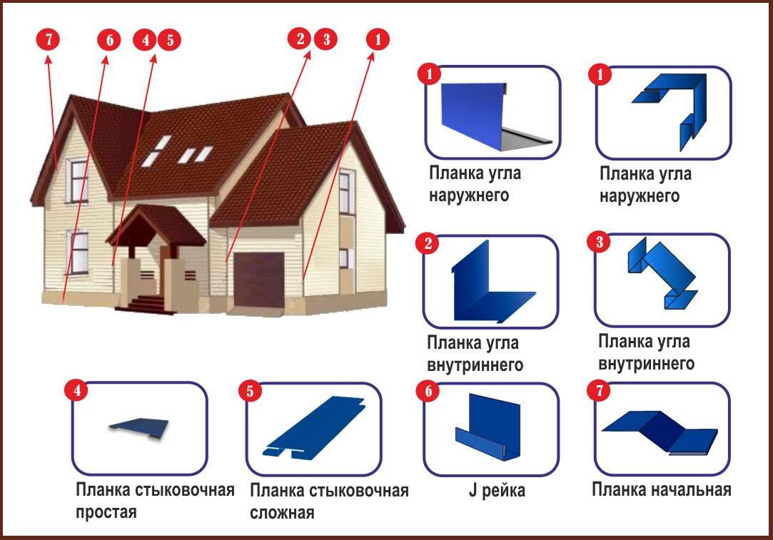 Также стоит учитывать, что обшивку стен профнастилом проводят с использованием дополнительных комплектующих, которые выполняют разные функции: