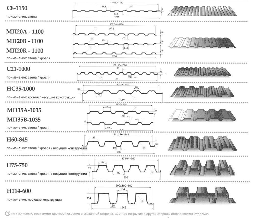 Виды профилированных листов