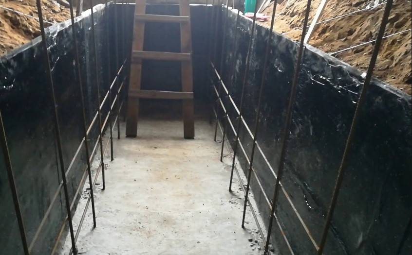 - Проводится гидроизоляция всей ямы: пол и стенки.