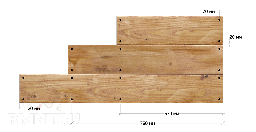 - укладывают ступеньки и подступеньки, для прочности соединяют дощечки саморезами.
