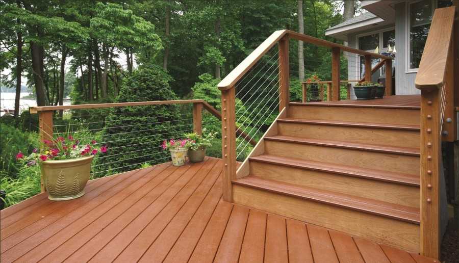 - террасная доска из древесно-полимерного композита (декинг отлично моется, долго служит, не скользит);