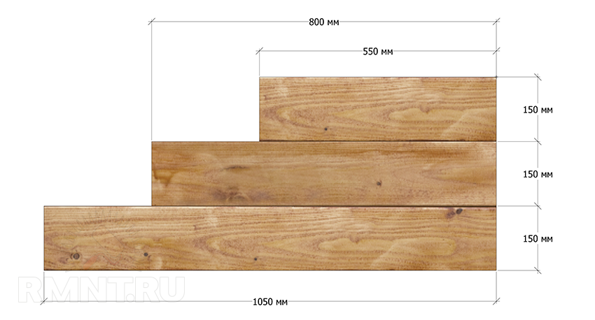 - разделить высоту будущего крыльца на желаемую высоту одной ступени, так узнают количество ступеней;