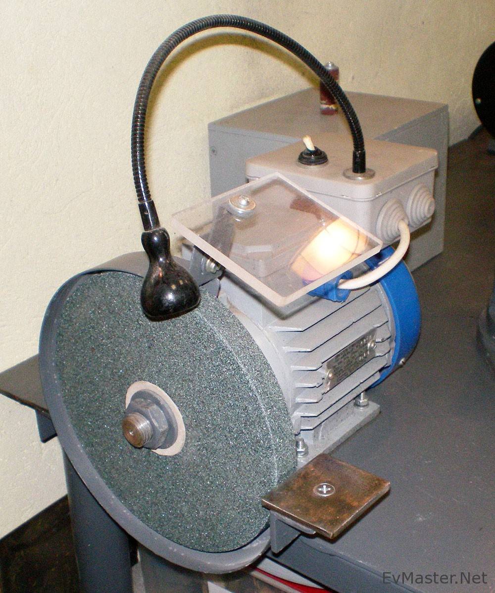 Электроточилку можно сделать самому и пользоваться ей для заточки стамесок, топоров, ножей, ножниц. Для этого нужно: