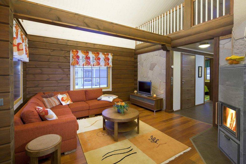 Сочетание цветов в интерьере зависит от оттенка дерева, из которого выполнен финский дом. Тёплые светлые тона (клён, сосна, берёза) сочетаются с: