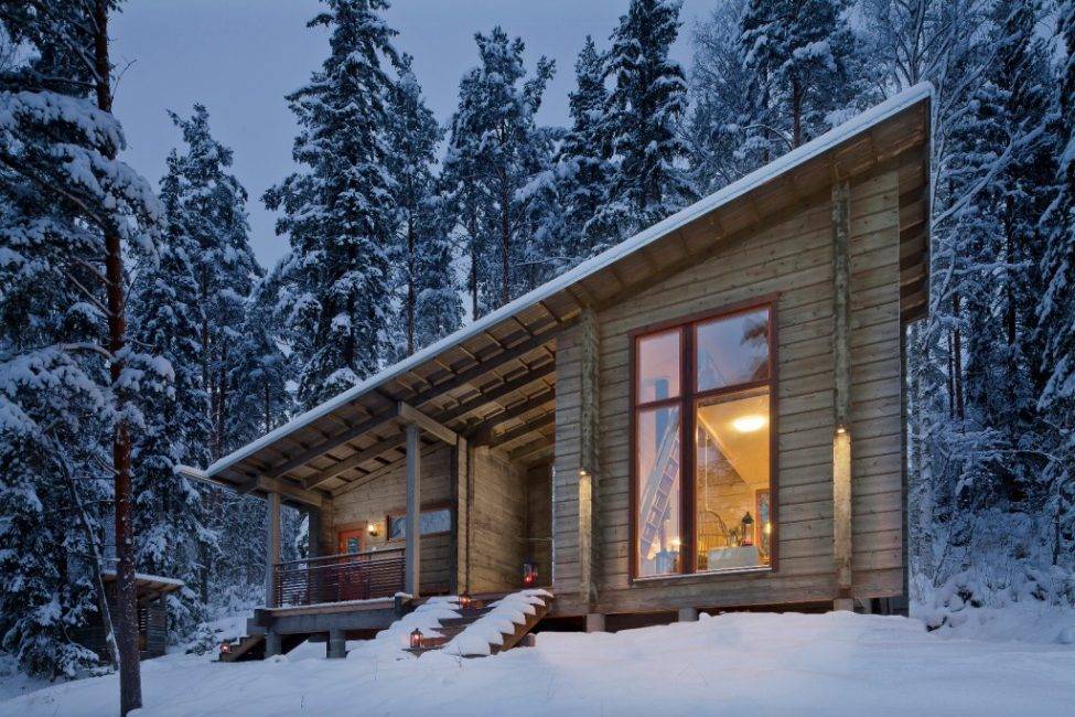 Технология сочетает методы строительства каркасных домов и архитектурных решений из клееного бруса. Компактные финские проекты изготавливаются из высушенного дерева, поэтому отделочные работы начинают сразу после завершения строительства.