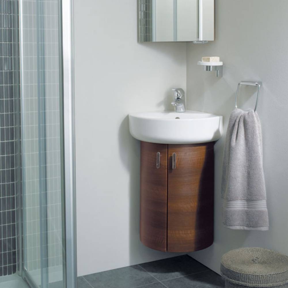 - Появляется несколько вариантов установки стиральной машинки, позволяющих не связывать её расположение исключительно с умывальником. Благодаря этому расширяются возможности выбора раковины. Лучше всего приобрести модель, встроенную в тумбу или угловую разновидность, которую часто крепят над узкой стороной каплевидной ванны.