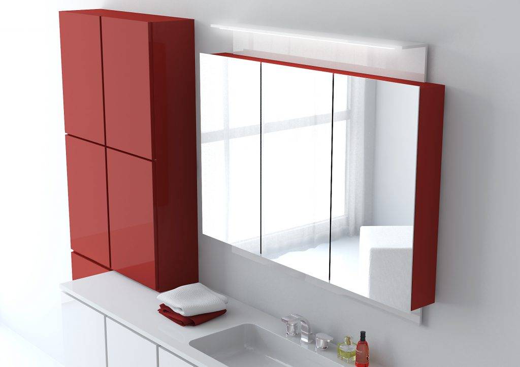 - Над умывальником также можно оборудовать шкафчик для косметики и средств по уходу за собой. Он бывает двух видов. Либо по центру устанавливается зеркало, а вокруг него крепятся две закрытые секции хранения. Либо дверцы самого шкафчика делают зеркальными. Такое решение позволяет визуально скорректировать интерьер ванной комнаты, создав дополнительную перспективу.