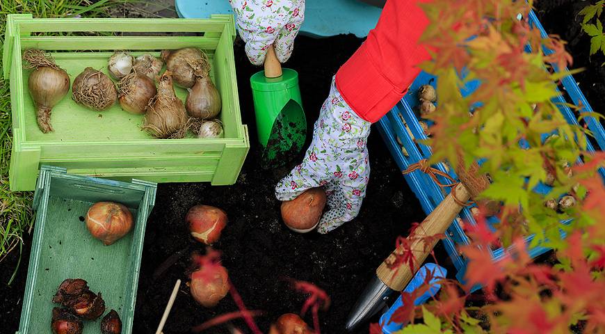 посадка луковиц тюльпанов