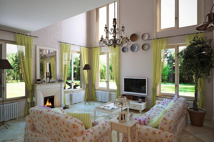 - Занавески в комнатах выполняются из однотонных светлых тканей с цветочными узорами.