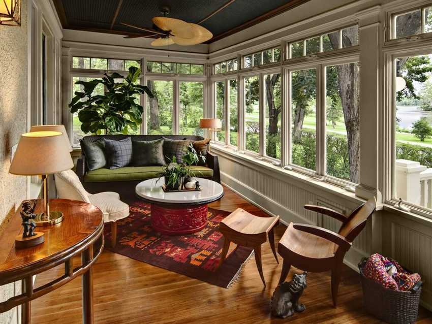 Это закрытая веранда, которая становится продолжением основного здания и дополнительной комнатой. Остекляется, оснащается камином либо другим отопительным оборудованием.
