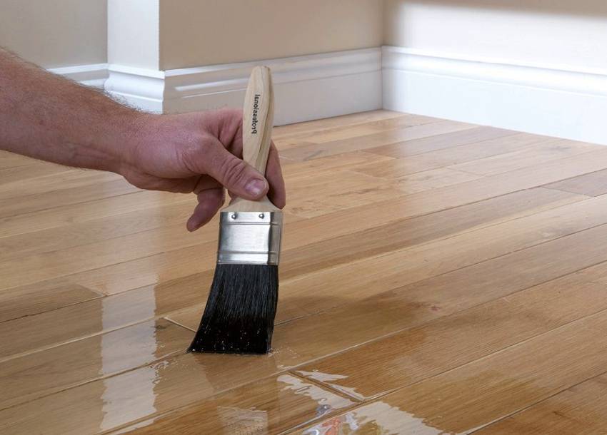 - Полиуретановый лак наносится на очищенное основание в несколько слоев.