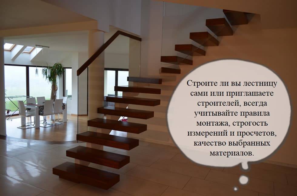 - При отсутствии ограждений перемещение по консольной лестнице отнюдь не безопасно, и в любом случае такая лестница в доме – фактор риска и зона повышенного травматизма. Классическая маршевая лестница с ограждением, спроектированная по формулам безопасности по сравнению с консольной конструкцией – образец безопасности.