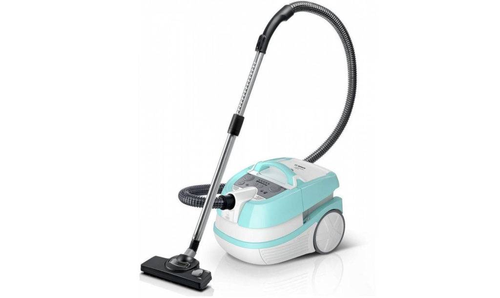 Эта модель достаточно компактна для своего класса и, благодаря большим колесам, весьма маневренна. Она выделяется трехступенчатой электронной системой, которая управляет мощностью всасывания (к слову, она составляет 325 Вт). При этом в потреблении пылесос довольно скромен – 1700 Вт на максимуме, а на Эко-режиме и того меньше. Объем аквафильтра – 1 л, резервуар для грязной воды тоже небольшой – 1,8 л, и именно этому пылесос обязан своими небольшими размерами. Длина сетевого шнура 8 м позволяет пропылесосить даже достаточно большую жилплощадь, не меняя розетки. Кроме использования по назначению устройство используют для мытья кафеля, чистки матрасов и мебели и даже “химчистки” зимней одежды. Удобства добавляет полностью разборный аквабокс, который легко промыть после уборки.
