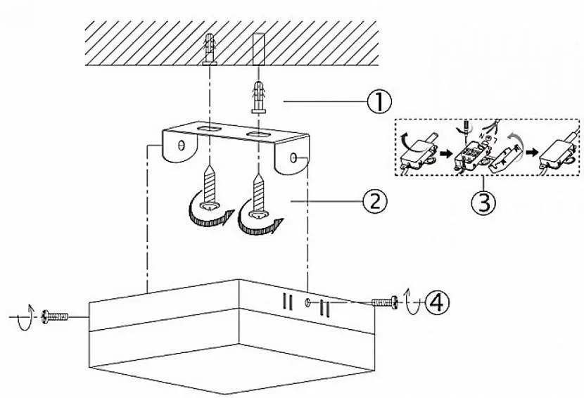 Схема монтажа накладного светильникаИсточник lampaekb.ru