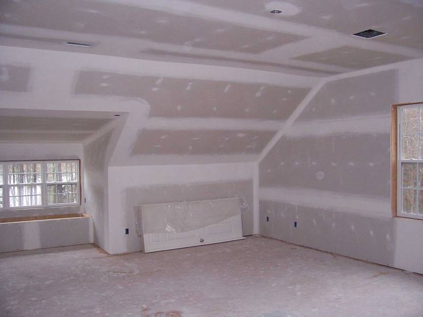 При помощи этого материала можно менять размеры комнат, создавать архитектурные формы. Дизайнеры создают разнообразные оригинальные проекты. Монтаж осуществляется на каркас саморезами. Гипсокартон используется только внутри помещений. Материал и работы отличаются доступной ценой, под ним можно скрывать коммуникации. Однако у него небольшая прочность, что исключает возможность выдерживать механические нагрузки. Кроме того, обязательно требуется выравнивание поверхности и дополнительная обработка.