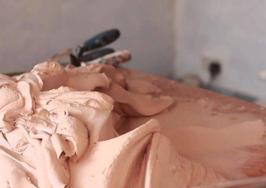 - Во-первых, отделочная масса довольно быстро сохнет как на поверхности, так и в рабочей емкости, поэтому короед готовят точно на запланированную поверхность и используют сразу после приготовления;