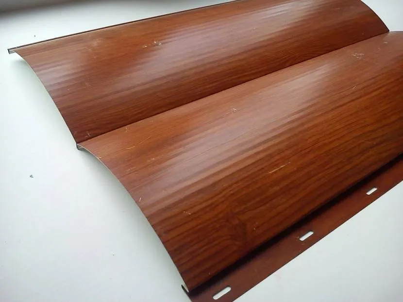 Первый изготавливали из оцинкованного листа, поверхность которого имитировала структуру и цвет дерева. Лист разрезали на заготовки, которым придавали скругленную форму методом штамповки. При этом готовое изделие – это или имитация одного бревна, или двух сразу. В последнем случае поучалась цельная панель, что облегчало заполнение стен за счет увеличения покрываемости плоскости.