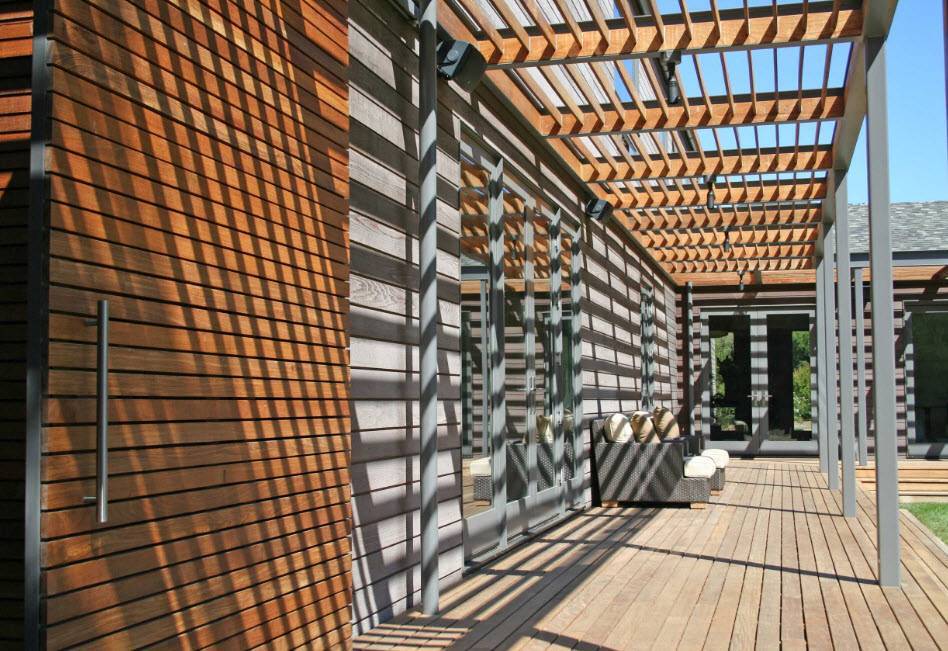 Конструкция открытого типа создана специально для летнего сезона, когда на ней будет комфортно отдыхать, благодаря постоянной прохладе. Но использоваться может только при хорошей погоде. Вне зависимости от типа, террасу лучше расположить позади дома. Если она становится продолжением жилища, тогда размещается с необходимой стороны фасада.