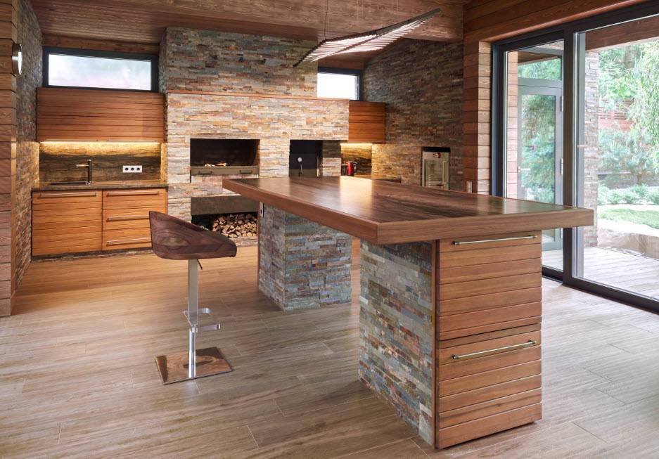 При выборе материалов обязательно учитывается стиль интерьера. Естественное покрытие (дерево, штукатурка) подчеркнут сельское настроение прованса или кантри. Более «промышленно» и брутально смотрятся стены из кирпича.