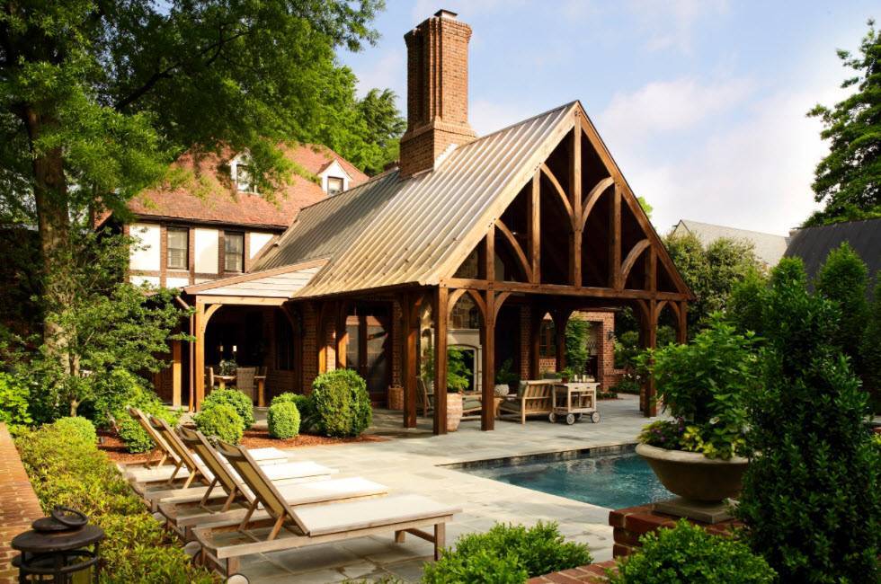 Для оформления навеса также используют материалы, устойчивые к атмосферным воздействиям. Вид потолка должен гармонировать с интерьером помещения и отделкой стен (странно будет смотреться пластиковое полотно на фоне классического деревянного сруба). Вагонка – распространенное бюджетное решение, подходящее для оформления потолков открытых и закрытых конструкций. В тренде – пластиковые панели, но нужно учитывать, что материал плохо переносит низкие температуры.