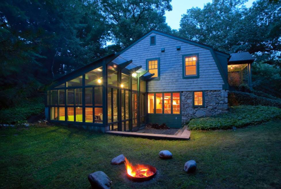Эта пристройка идеально вписалась в ландшафт участка с каменными дорожками и подпорными стенкамиИсточник remoo.ru