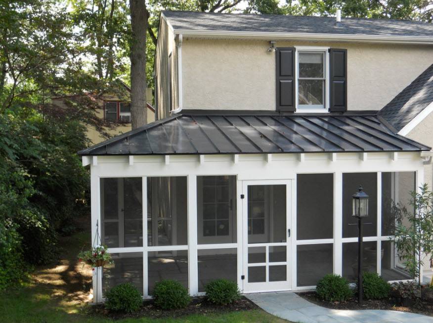- Сайдинг для наружной облицовки подходит любой, в том числе и металлический. Но нужно учитывать, что без слоя теплоизоляции между наружной и внутренней обшивкой на такой веранде летом будет очень жарко.