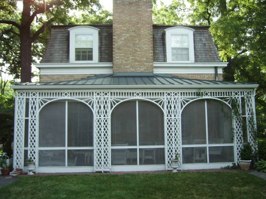 Отдельный вопрос – как обшить веранду снаружи между уровнем земли и стенами, если она стоит на винтовом или столбчатом фундаменте. Вариантов может быть множество от кирпичной кладки до облицовки по каркасу любым подходящим материалом: