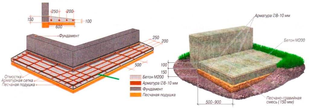 - при песчаных грунтах минимальный размер составляет 0,7 м;