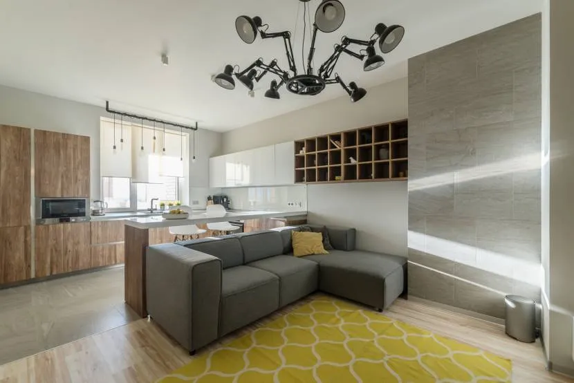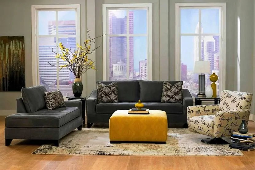 Задача усложняется, если оттоманка входит в набор с диваном или с диваном и двумя креслами. Пространства должно хватать для всех предметов; идеально, если Г-образную модель можно поставить не у стены, а ближе к центру комнаты. В квартире-студии мебель может стать элементом зонирования. В небольшой гостиной, где диван ставят вплотную к стене, уместно подумать о конструкции-трансформере.