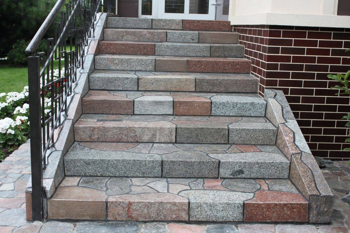 Природный камень лидирует среди всех материалов по степени прочности. Его используют для облицовки элементов. Основу делают из износоустойчивых пород, способных выдержать большой вес материала. Необработанный гранит или мрамор способен облагородить фасад здания, а естественная шероховатость исключит скольжение обуви на мокрой поверхности.