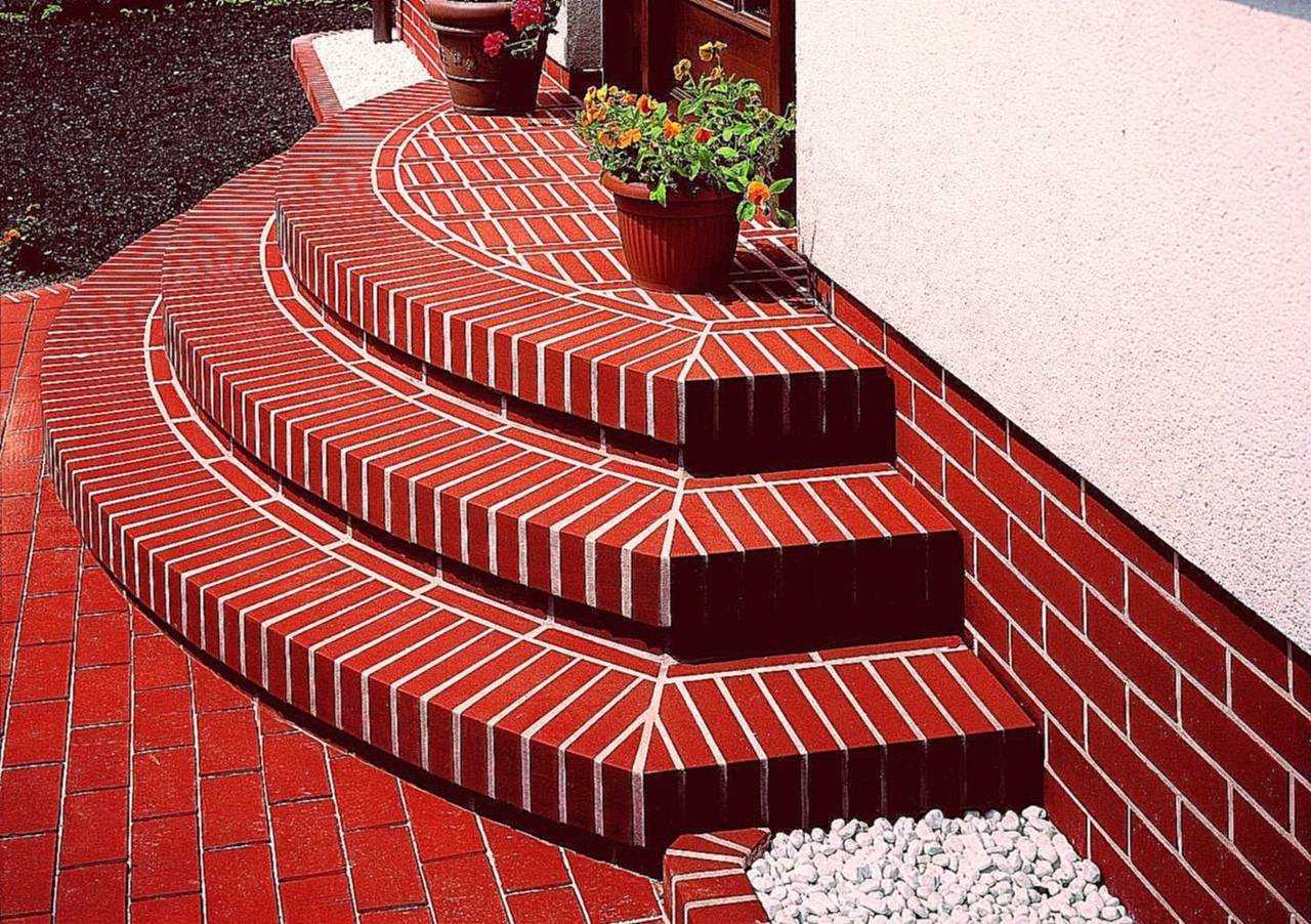 Классический материал, из которого сооружают опоры для проступей или выкладывают глухое основание со ступенями. При возведении парадного не применяют пустотелые кирпичи – они быстро растрескиваются и не могут выдержать большую нагрузку. Основание делают из клинкерных блоков, которые затем облицовывают. Для кирпичного парадного также сооружают заглубленный фундамент.