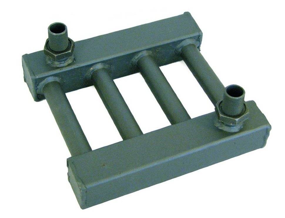 За редким исключением, трубы из чугуна и стали, и тем более нержавейки, очень сложно изогнуть в форме спирали или змейки, поэтому при изготовлении теплообменника трубчатые заготовки просто сваривают в виде регистров.